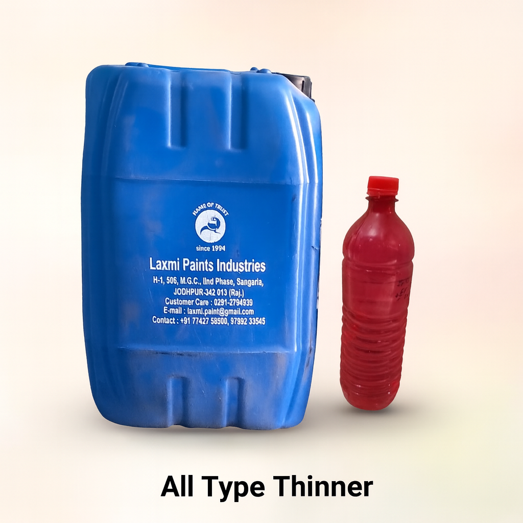 Thinner is a specially formulated solvent used to reduce the viscosity of paints, primers, and coatings for smooth application. It improves flow, drying time, and finish quality while also helping in cleaning brushes and tools.